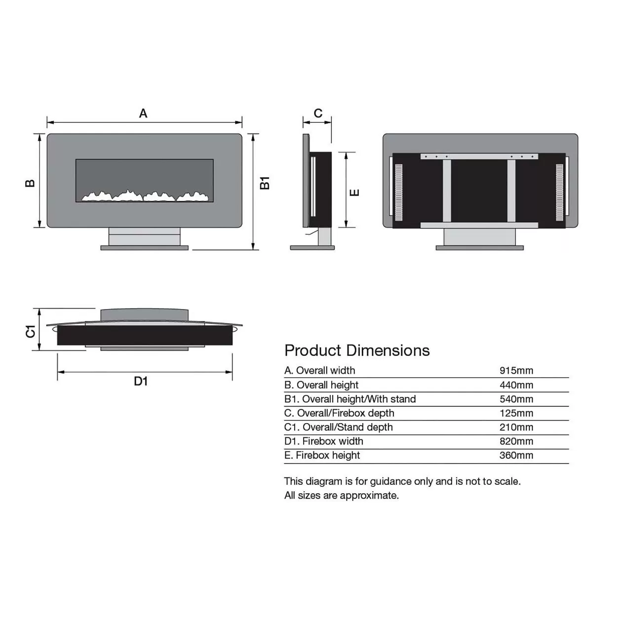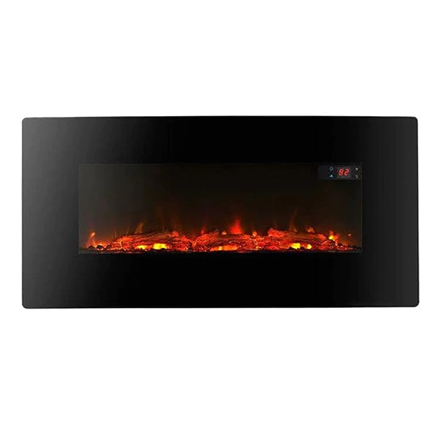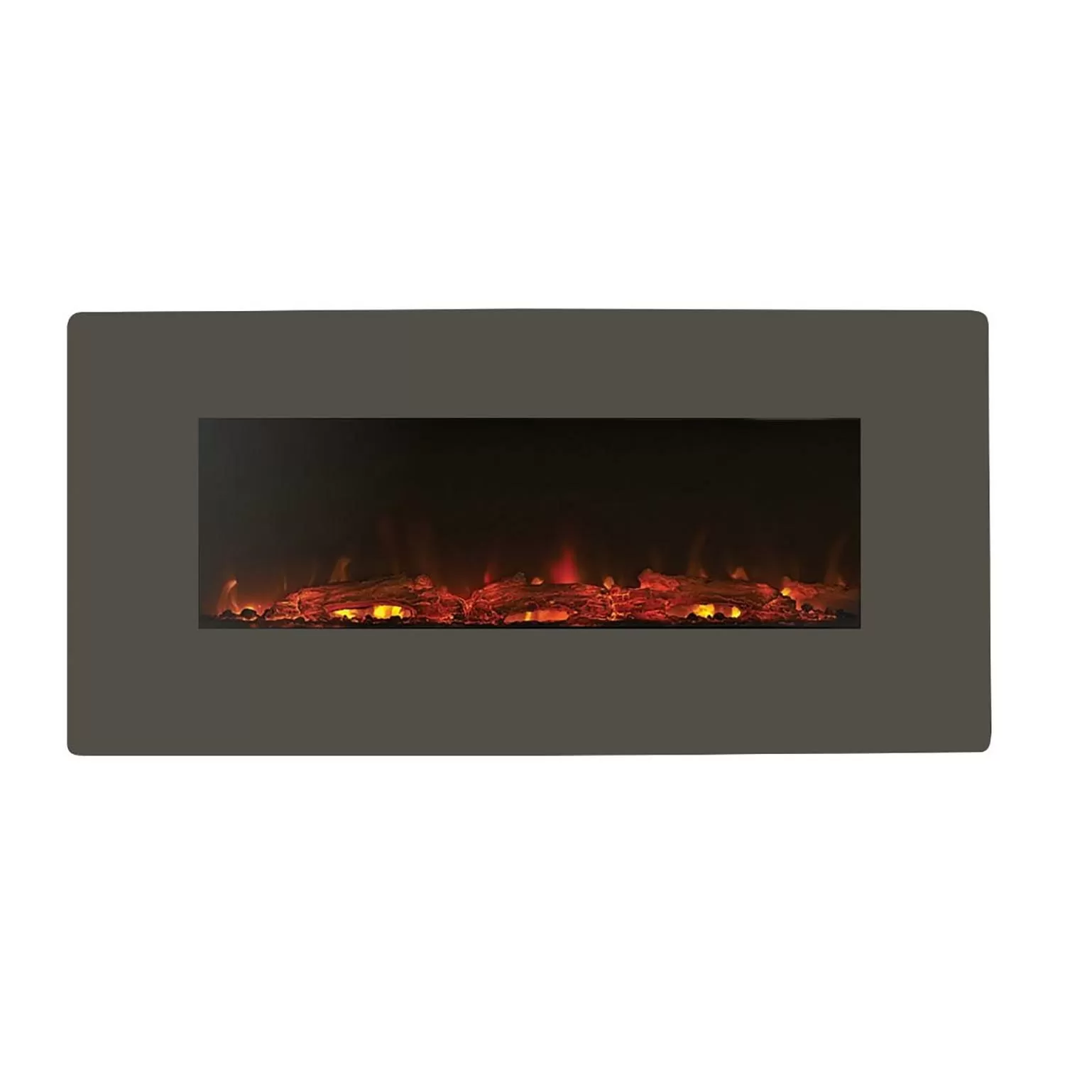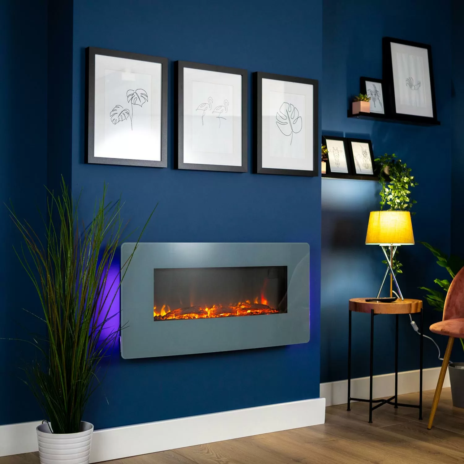 Contemporary hang on the Wall LED Electric fire with flat black or grey glass one piece fascia to suit any decor