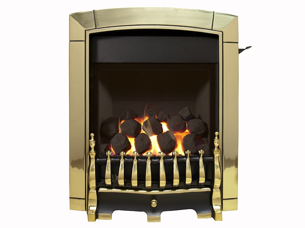 Full depth high efficiency glass fronted gas fire with a solid cast Brass frame & fret