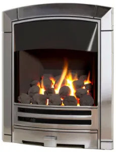 The Flavel Decadence HE Remote Control Gas Fire is a high efficiency, glass fronted, deepline conventional flue gas fire with an efficiency of 84.3% and generous heat output of 3.4 kW.